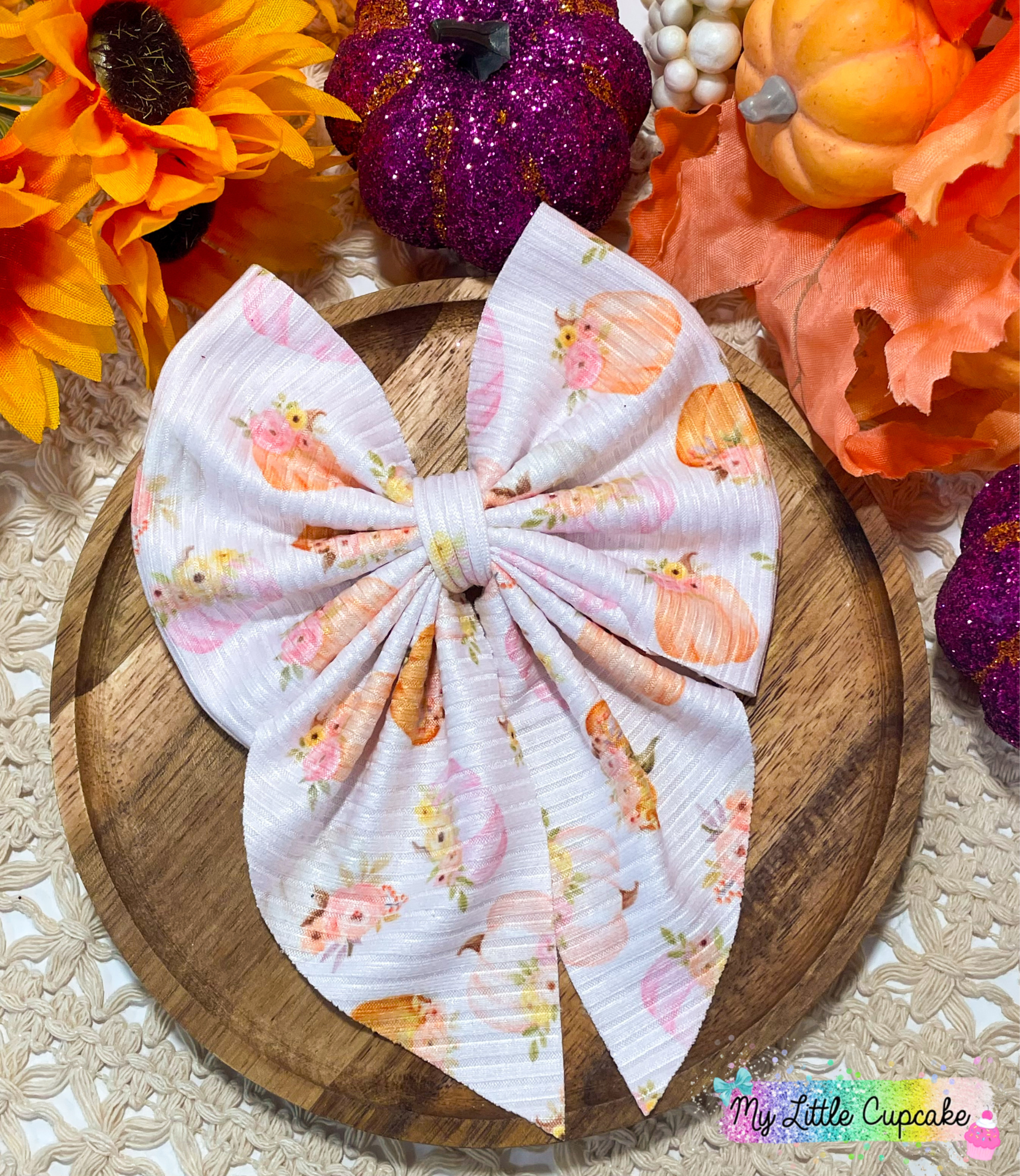 Pink Pumpkin Floral Fabric Bow